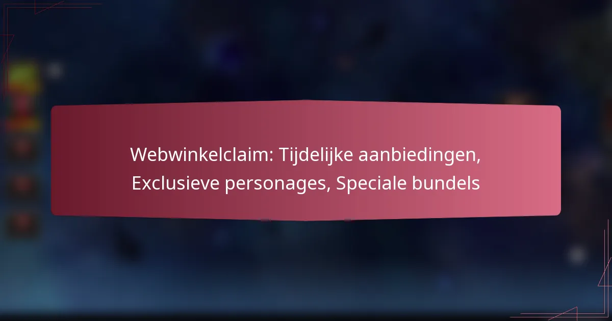 Aanbiedingen voor beperkte tijd in de webwinkel omvatten exclusieve personages, speciale bundels en promotionele kortingen die gedurende een korte periode beschikbaar zijn. Deze aanbiedingen zijn ontworpen om urgentie te creëren en gebruikers aan te moedigen snel aankopen te doen voordat ze verlopen.